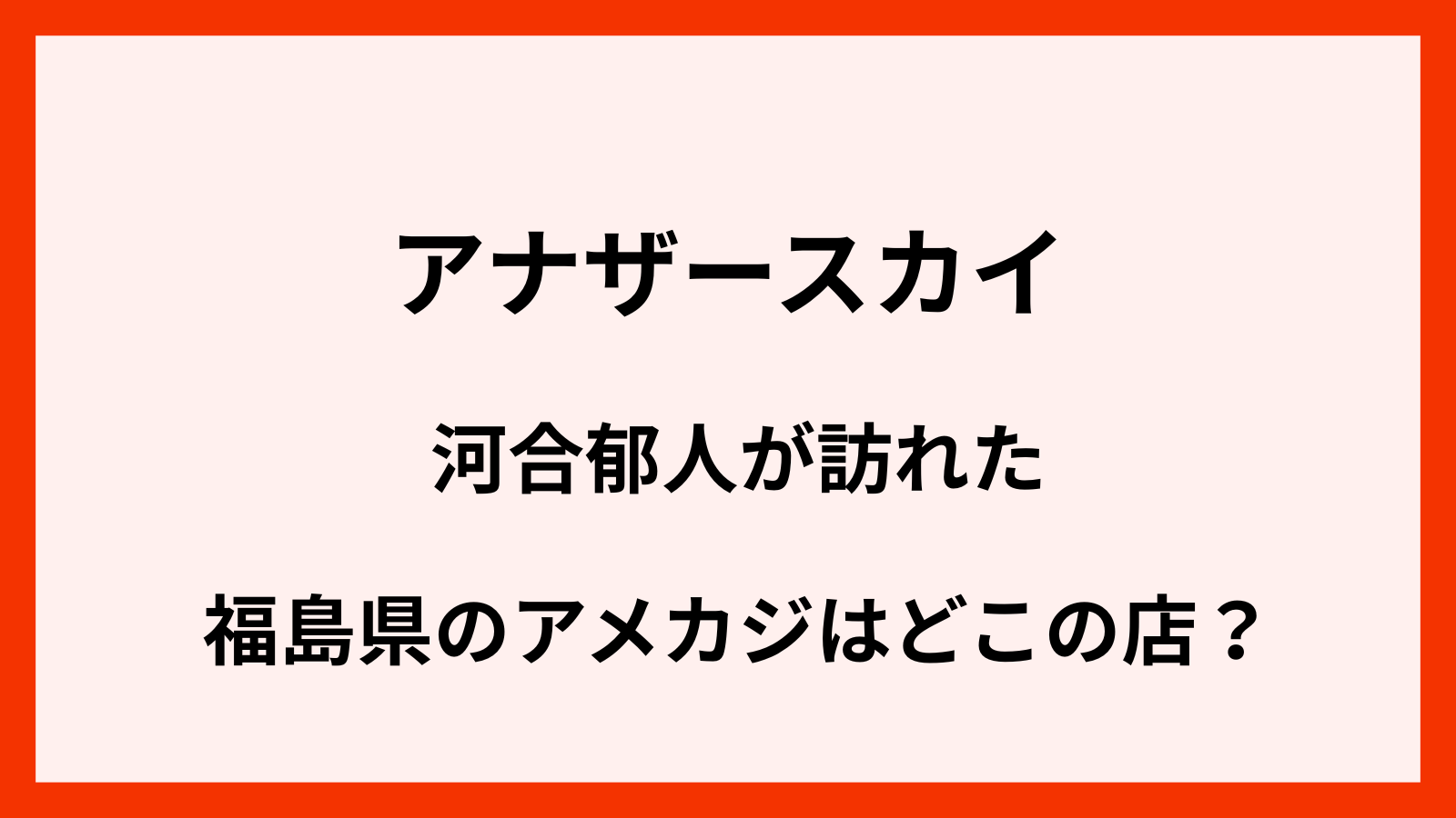 今回のアナザースカイでは、そんな思い出深い福島県を訪れるということで、河合郁人さんにとって特別な旅になりそうですよね。