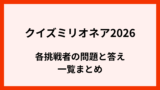 クイズミリオネア2026の結果!各回答者の問題と答え一覧まとめ