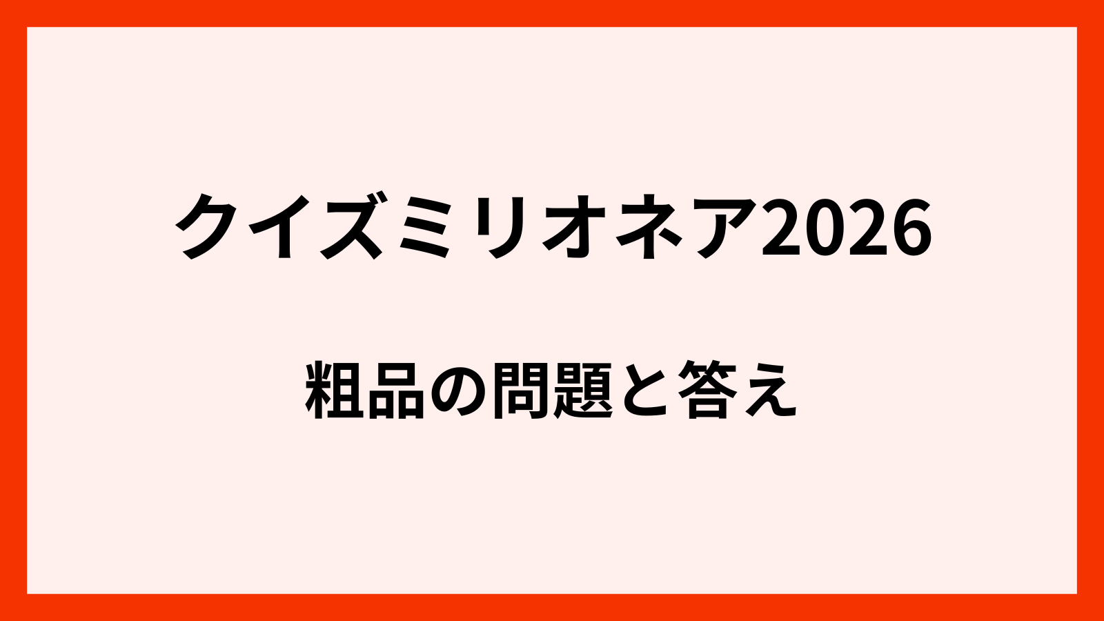 • クイズミリオネア2026の粗品さんの問題と答え一覧